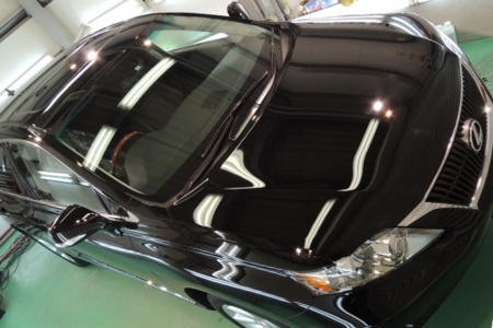 スクラッチプロテクトコートのガラス有効性便は85%ガラスコーティング素材として最高レベルに到達しました。残りの15%が防汚性能を強化する添加剤と溶剤で構成されており、コーティング膜を構成するガラス成分がほとんどを占めています。さらに1台に使うコーティングの使用量は100~150mlです。通常の7~10倍くらいです。しかし、ムラなく均一に仕上げるには、それほど難しくありません。伸びもよく、拭き上げが切れ良くスムーズにムラなく仕上がります。「質をあげることで作業性が低下する」といった今までのガラスコーティングとは次元が違います。照明設備や空調設備の整った環境ならば、ムラなく均一に仕上げることが可能です。高純度で深みのある透明感に重厚な膜厚のある被膜が、高度な下地処理技術(磨き)により磨かれた塗装をさらに美しく強調し、まばゆい輝きを創り出します。